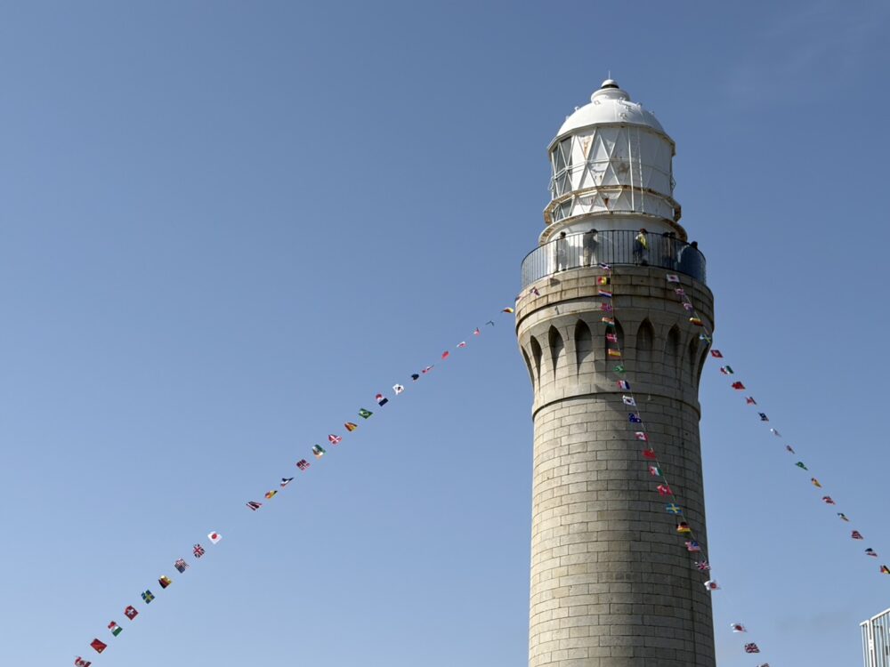散り始めた角島灯台の水仙と灯台150周年記念イベント