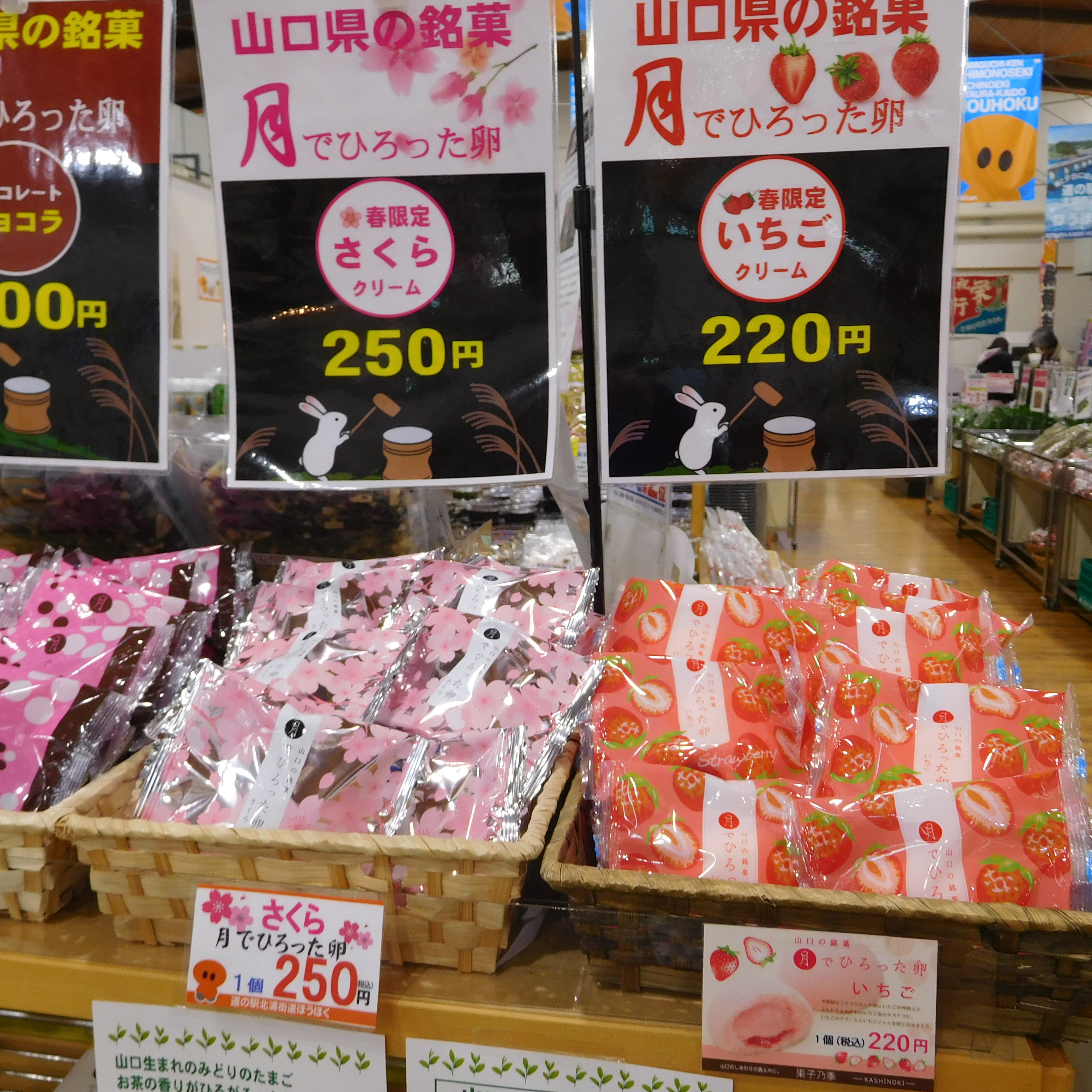 そして春近しということでコチラはお土産にも喜ばれる山口を代表する銘菓『月でひろった卵』春限定の『いちご』と『さくら』が登場