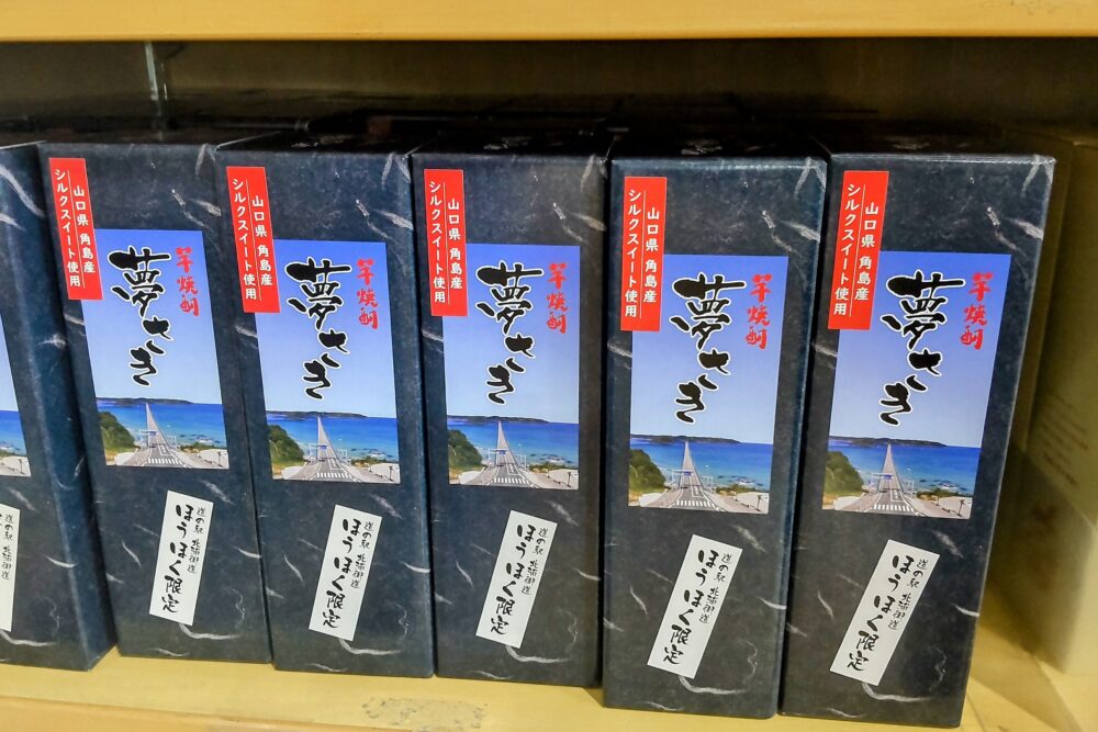 道の駅ほうほくでは、角島産芋100%使用の芋焼酎「夢さき」、限定500本発売中。先人に倣って、ぜひオンザロックでどうぞ☆