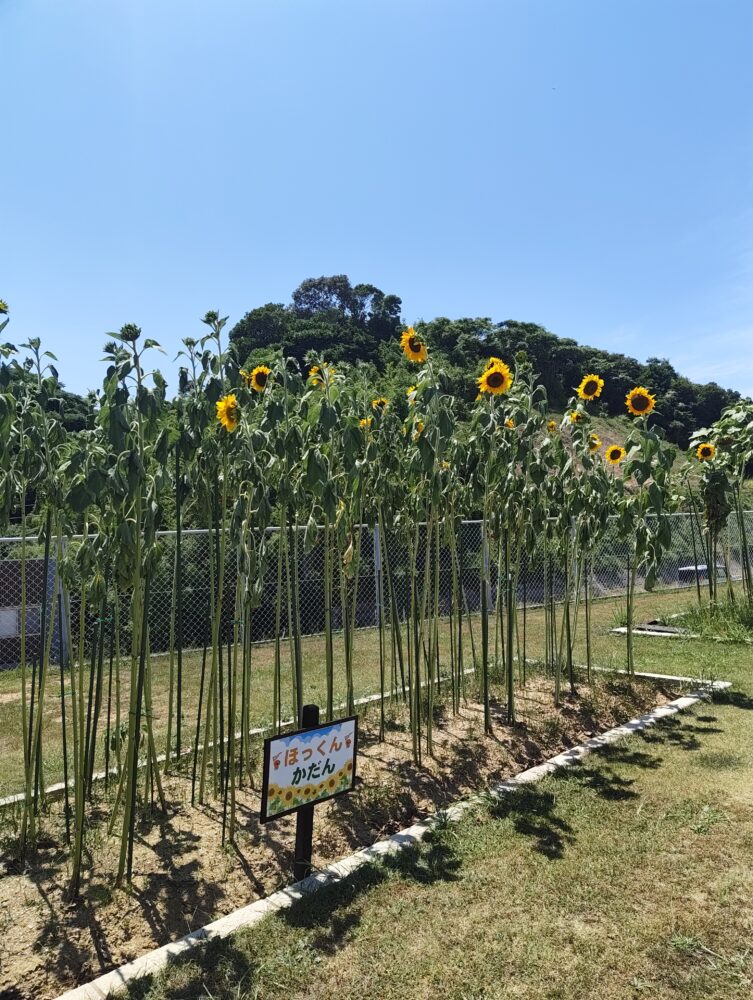 今朝の下関市は雲の多い空でしたがこれを書いている今は太陽が顔を覗かせ、海の青色も良く出ています。予報ではこの後雨なんですが果たして。そして晴れた空の下では駐車場に植えられたヒマワリ達も端の方からグラデーションで順番に咲いています。早く咲き始めた方の花はもう萎れてきていますが、まだこれからという花もあり長く楽しめそうです。日々苛烈な暑さですが写真に切り取ってみるとなんとも穏やかな空とお花といった風情です。
