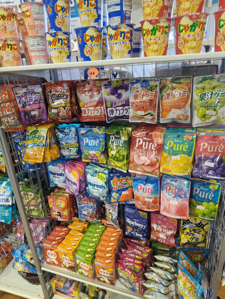 レジ横には飴やグミも並べています。意外とコンビニ並みにグミが多いです。
