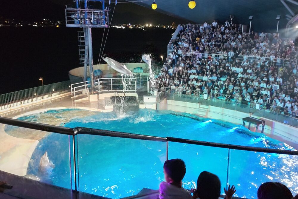 先日、行ってみましたが、たいへん混雑していました。イルカ&アシカショーは大人気、夏祭り風だったり触れる展示などもありました。昼は体験イベントも各種開催。夜の水族館は、残るは今日と明日だけ、やっぱり混みそうです!