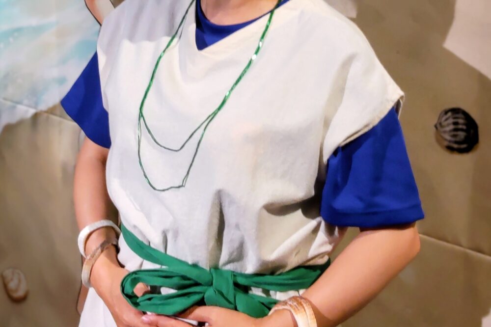 道の駅ほうほくから車で約5分、土井ヶ浜遺跡・人類学ミュージアムでは、弥生時代の衣装・貫頭衣(かんとうい)を着付けする「土井ヶ浜弥生人なりきり体験」を設置。こちらも入館料は要りますが、着用は無料。