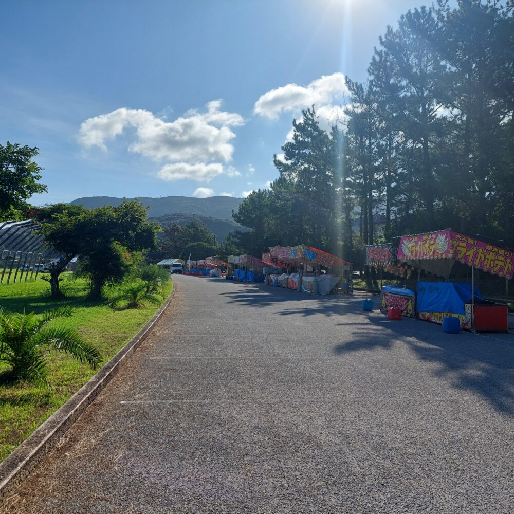 さて本日はおまちかね、豊北町の花火大会です。会場の阿川はほうせんぐり海浜公園より、近隣住民のスタッフが今朝の様子を撮影してきてくれました。本番はもちろん夕方からですが、早くも昨晩から設営された出店の賑やかなこと。人はもちろんいませんが。フライドポテトなんて、わくわくしちゃいますね。