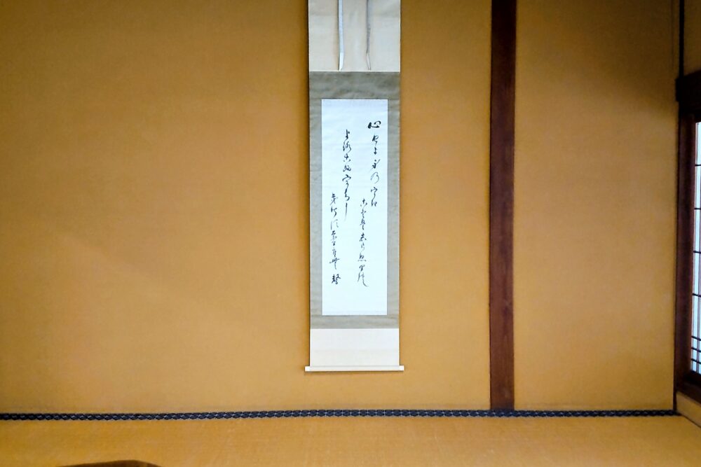 今回の冒頭は、菜香亭大広間の床の間に飾られていた、井上馨(いのうえかおる:1836~1615)の和歌。萩藩の維新の志士として活動、幕末に英国留学した長州ファイブのひとりです。明治維新後は政治家として活躍し、外務大臣などを歴任。菜香亭にとっては、名付け親でもあります。