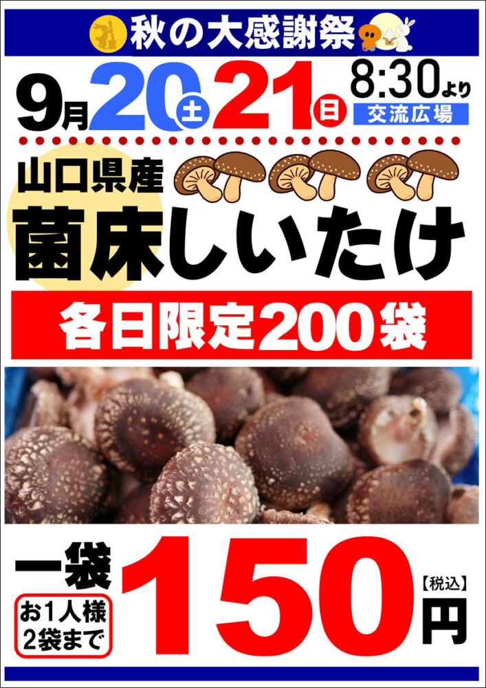 こんにちは。山田です。今朝の道の駅ほうほくは曇りでこれから雨予報ですが、元気に営業しています。今日と明日は、菌床しいたけが1袋150円、各日限定200袋、お一人様2袋まで。お早めに!