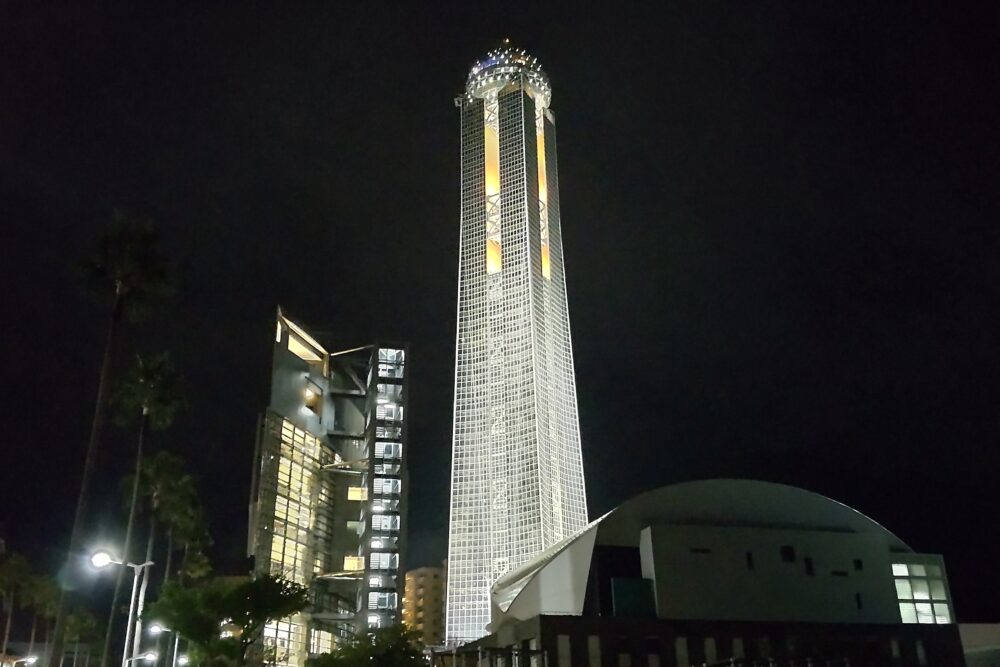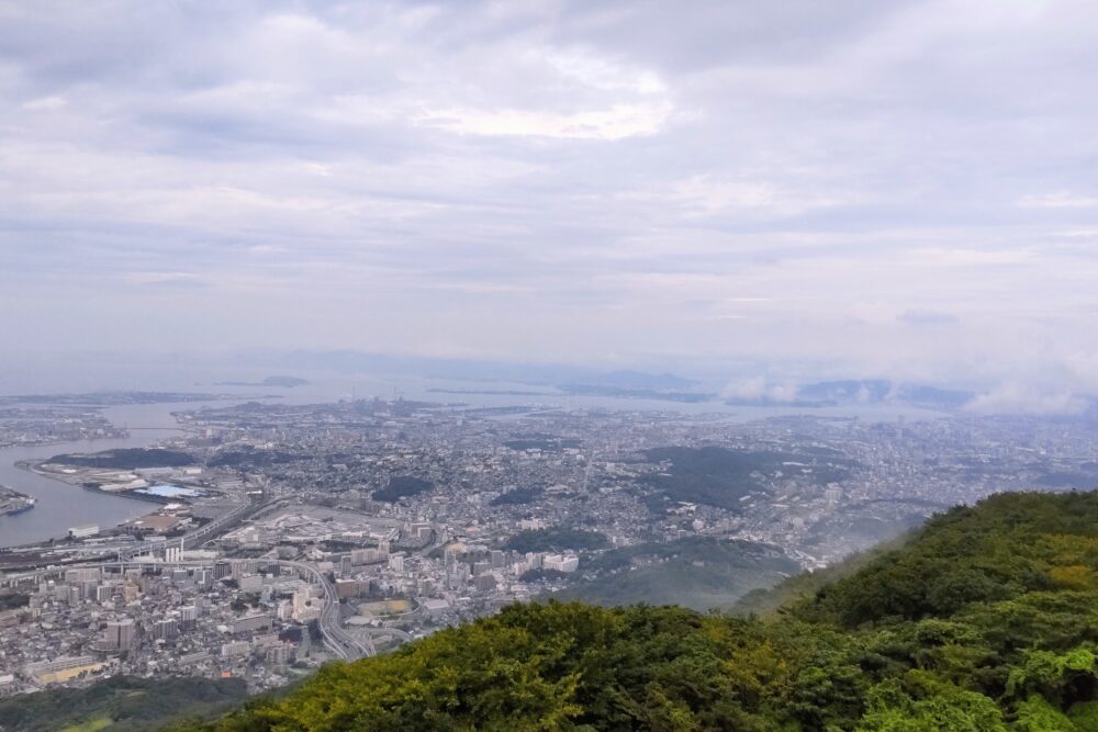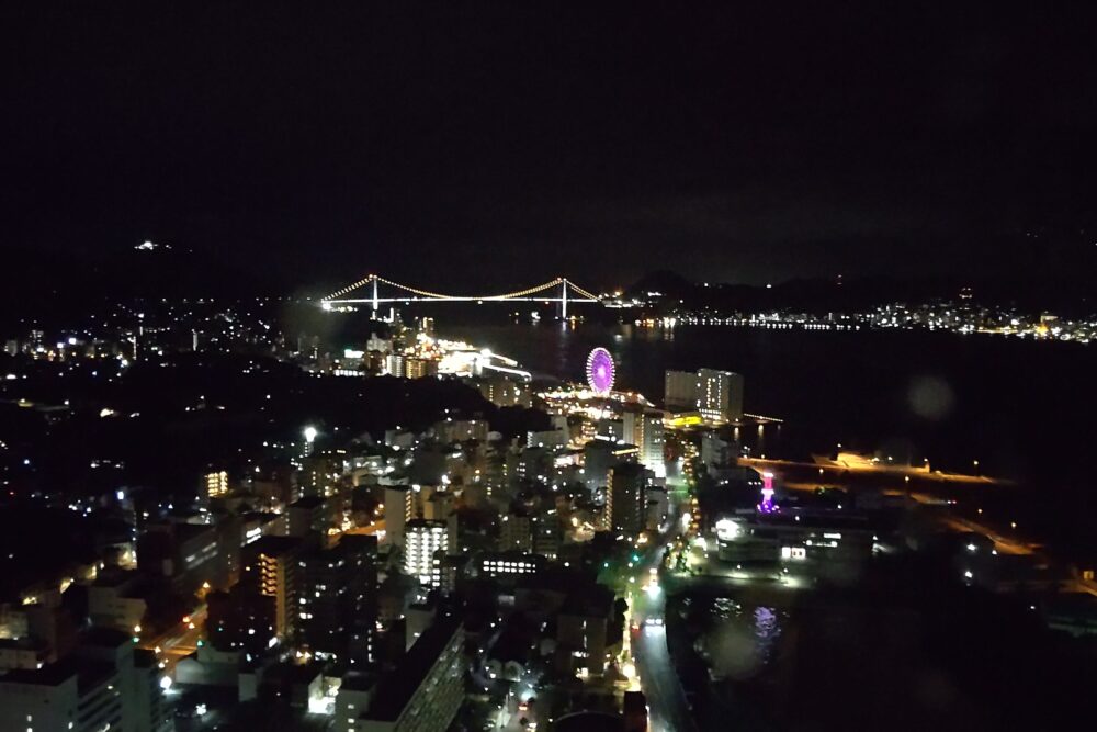 北九州市は「新日本三大夜景都市」に選ばれていて、特に皿倉山からの夜景は視野角200度を超え、「100億ドルの夜景」と呼ばれているそうです。あいにく、天気が悪くて雲に覆われがちでしたが、夜景は綺麗に見えました。
