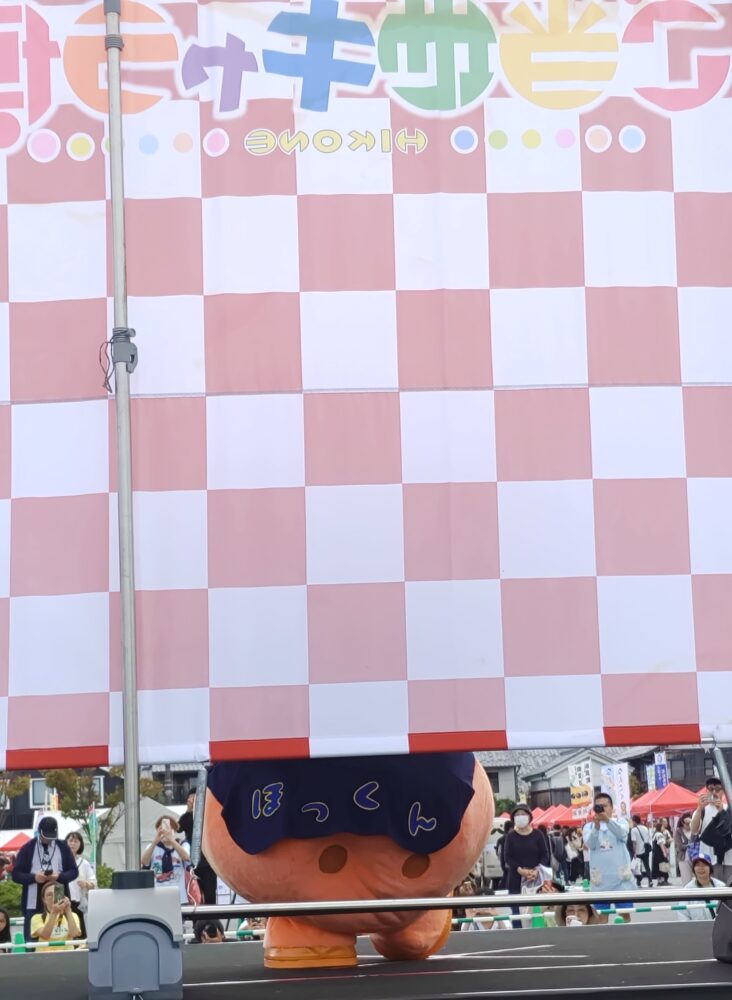 ひこにゃん! さのまる! くまもん! みきゃん! などなど、全国区で有名な⭐超豪華⭐ご当地キャラクターと同じ舞台で、最前列をキープするほっくんの勇姿をごらんください 🙂