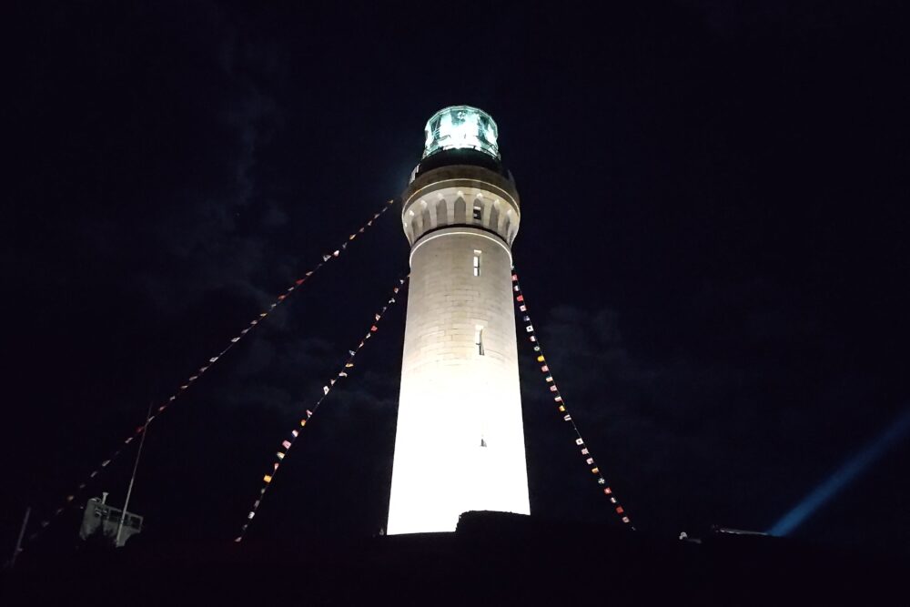 夜闇に浮かぶ白い石造りの灯台が放つ光はくるくる回転し、五秒に一度、届きます。ぜひご覧ください!
