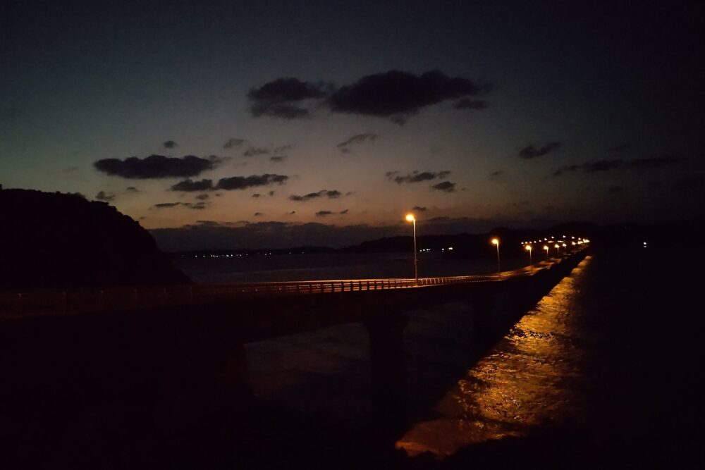 夜にお出かけなら、夜の角島大橋を渡って、夜の角島灯台へ。来年(2025)3月22日まで、日没~22時、ライトアップしています。明治9(1876)年3月1日初点灯、来年で150周年を迎える、今なお現役の、国の重要文化財です。