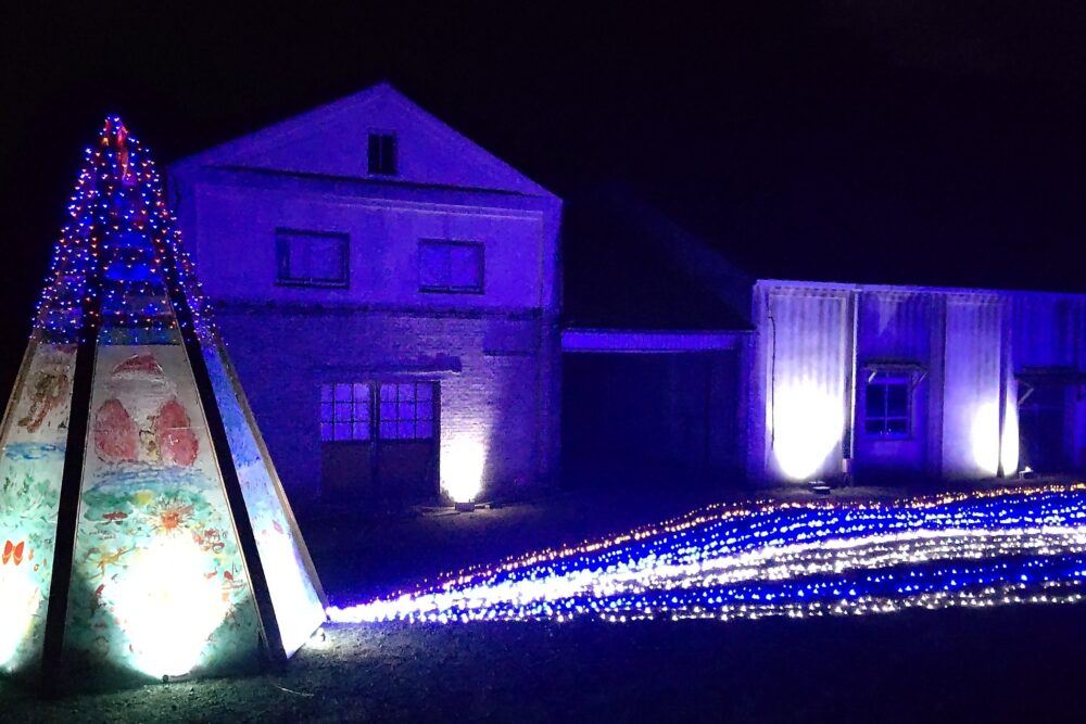 道の駅ほうほくから車で約2分、下関市豊北町神田特牛の漁網製造工場跡に、イルミネーションのクリスマルツリーが登場しています。特牛交差点で右折してすぐ、国道435号に入って左側。日没~20時、今年のクリスマスまで。