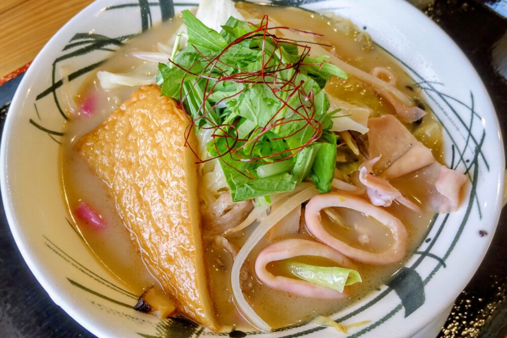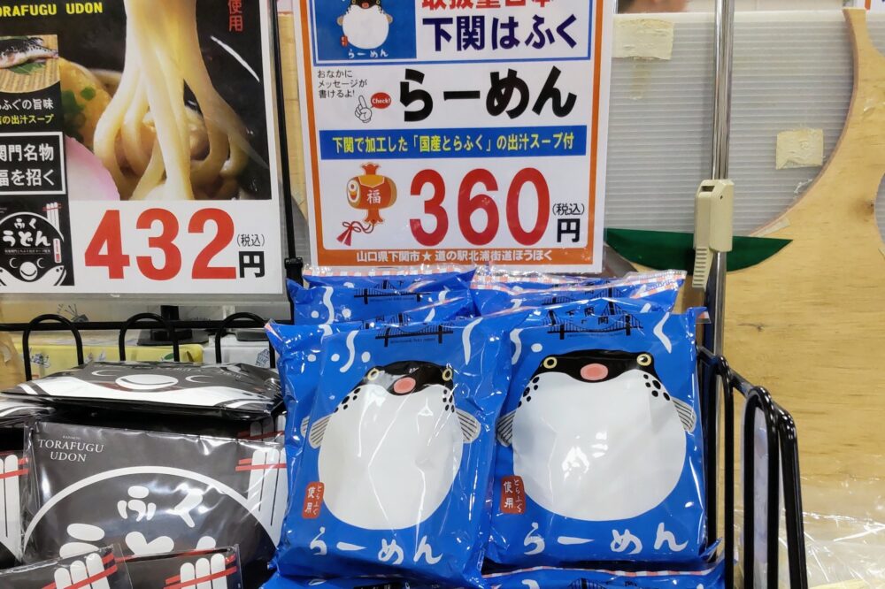 道の駅ほうほく売店ほうほく夢市場には、角島俺の塩ラーメンや、下関ならではの、ふくラーメン、鯨骨らぁめんが並んでいます。また、レストランわくわく亭では、ラーメンではないですが、地元産のイカを使った特牛ちゃんぽんを食べることができます。こちらもぜひどうぞ☆
