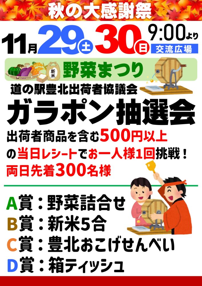 今日と明日は、道の駅豊北出荷者協議会主催の野菜祭り🥬ガラポン抽選会!