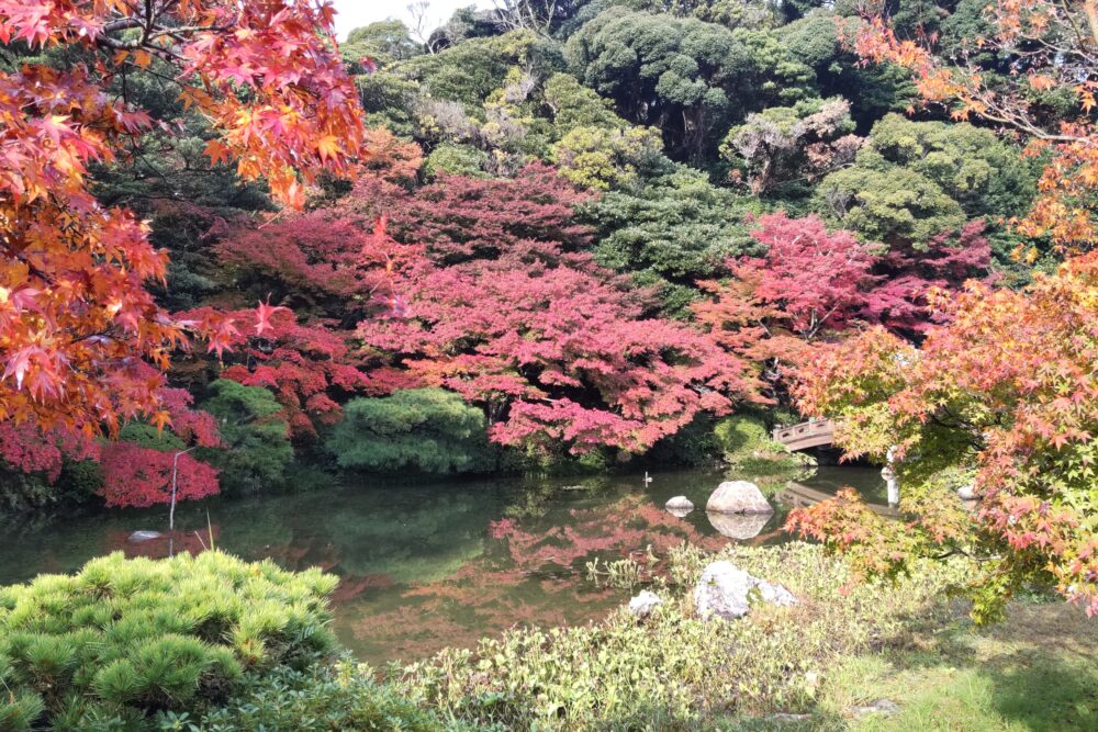 先日、下関市長府にある長府庭園に行くと、ちょうど紅葉が真っ盛りで、見ごたえありました。長府毛利藩の家老格であった西運長(にしゆきなが)の屋敷跡で、小高い山を背にした約31,000平米の敷地。池を中心に書院・茶屋・あずまや残り、秋の紅葉を眺めながら散策できます。