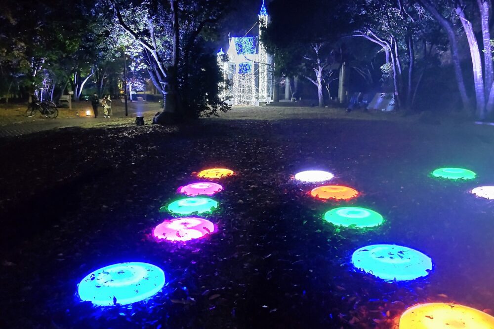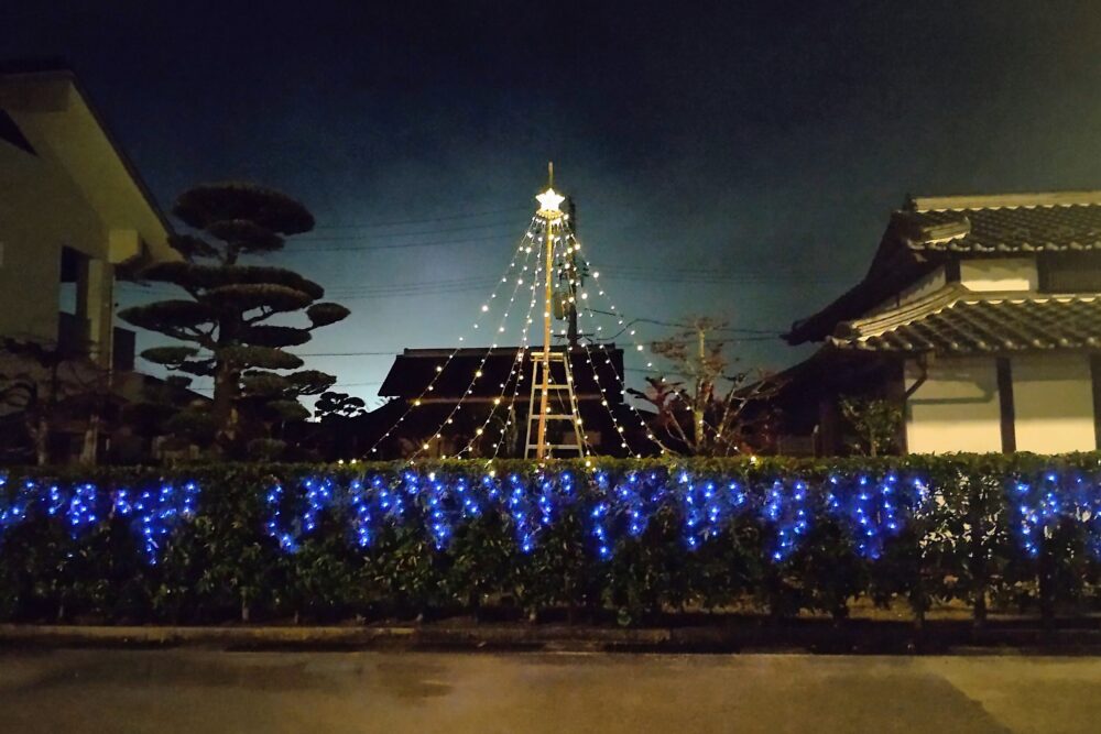 街路にはイルミネーションが飾られ、山口ふるさと伝承総合センターでは施設内の建物がにぎやかに輝いていました。ちょっとウキウキしますね。