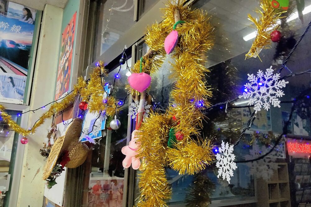 駅舎内にも、かわいいツリーやリースなどの装飾があります。来年1月13日まで、17時~22時。滝部駅を通じて、観光や帰省で豊北町を訪れる方を歓迎しています。夜にお時間があれば、ぜひお立ち寄りください☆