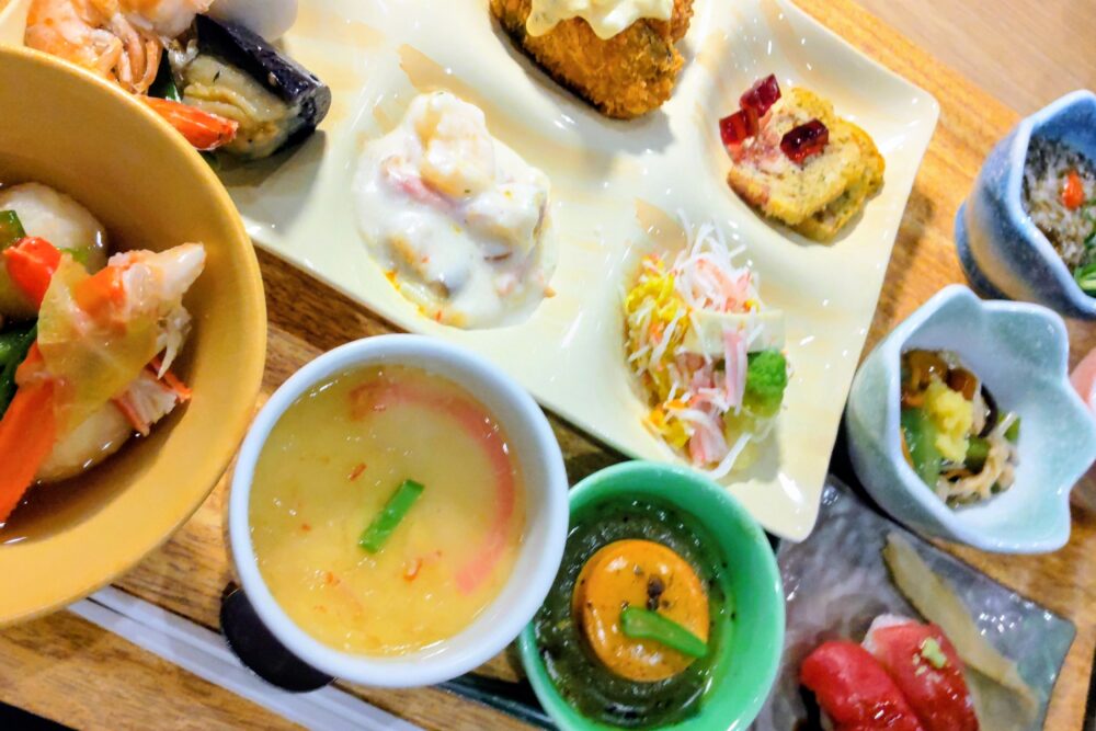 角島大橋のたもとにある、ホテル西長門リゾートさんでは、ただいま冬のビュッフェ「エビ・カニ祭り」開催中。エビ料理・カニ料理が食べ放題、ライブキッチンには「マグロ握り寿司」や「花畑牧場のラクレットチーズ」など。要予約、18時からと18時半からで、90分制。