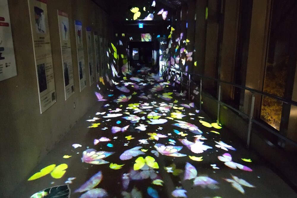 館内あちこちで光る蝶は、来場者を物語の世界へと導く、月の使者。伝統音楽と光で演出される、世界の植物を楽しめます。