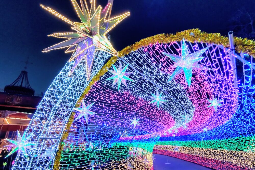 隣接のときわ遊園地では、TOKIWAファンタジア2025「音と光のstarlight illumination」開催中。時間はときわミュージアムと同じで、こちらは定休の火曜と大晦日・元旦以外は営業。入場料1000円ですが、ときわミュージアムと共通券もあります。