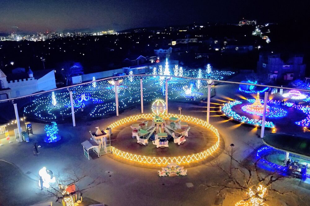 植物館が静なら、遊園地は動。歩いて眺めるのも良いですが、夜の観覧車で、空中から、夜のイルミネーションや夜景を眺めるのも楽しいです。