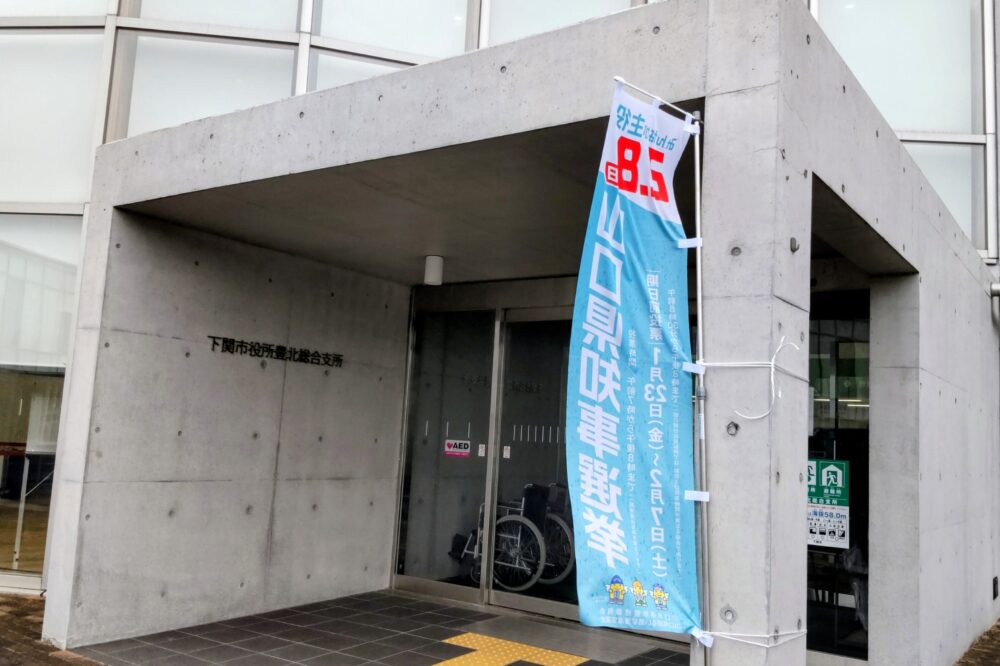 道の駅ほうほくから車で約10分、下関市豊北町滝部にある下関市役所豊北総合支所では、今日(2/2)から衆議院選挙期日前投票所が設置されました。山口県では現在、山口県知事選挙と衆議院選挙・最高裁判所裁判官国民審査が同時に行われています。いずれも2月8日(日)投開票。