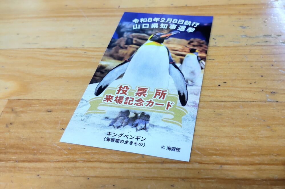 令和8年2月8日執行山口県知事選挙投票所来場記念カード 山口県下関市豊北町滝部