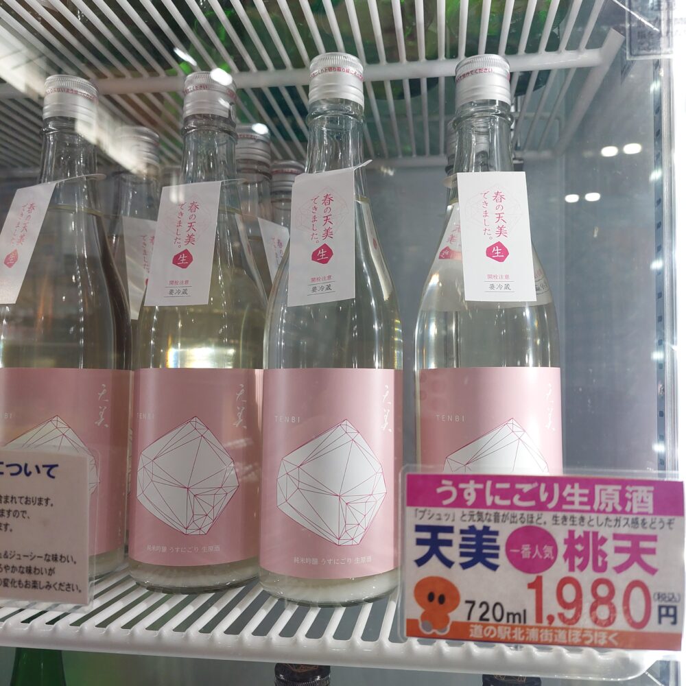 売店夢市場のお酒コーナーには春の天美『桃天』が入荷しています。