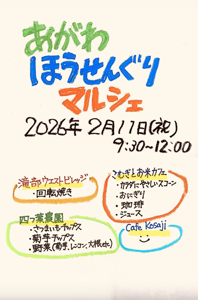 明後日2月11日(水祝)建国記念の日、道の駅ほうほくから車で約10分、阿川ほうせんぐり海浜公園で『あがわほうせんぐりマルシェ』が開催されます。午前中(9:30~12:00)のみですが、四つ葉農園さんはじめ、滝部ウエストビレッジさん、 Cafe Kosajiさんなどが出店。ちょっと寄ってみてください!