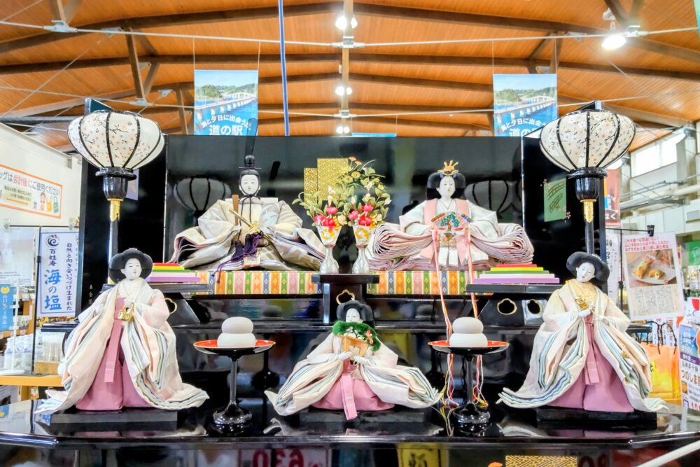 こんにちは。山田です。今朝の下関市内では積雪もあったようですが、道の駅ほうほくは雪もなく元気に営業しています。売店ほうほく夢市場に、お雛様が登場☆