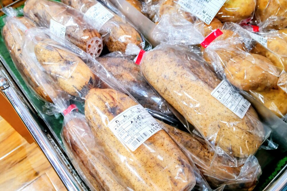 道の駅ほうほくにも、今の時期は蓮根が並んでいます。先日、ポタージュスープにしてみました。コンソメスープで煮て、ミキサーにかけ、牛乳を加えてできあがり。お手軽で大量消費可能。ぜひどうぞ☆