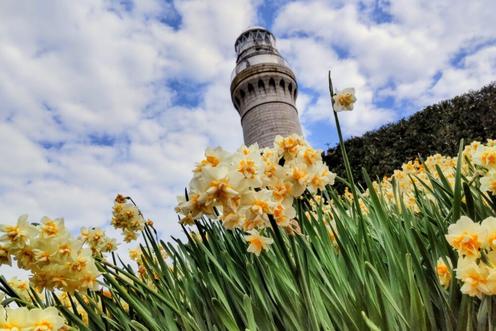 散り始めた角島灯台の水仙と灯台150周年記念イベント