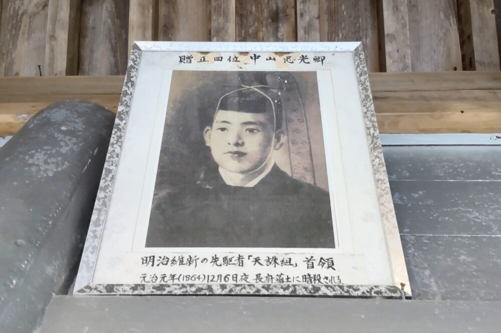 しかし幕府軍の追討を受け、天誅組は9月末の鷲家口(わしかぐち)の戦いで壊滅。長州へ逃れた中山忠光は長府藩に匿われ、豊浦郡(下関市域)を転々とし、翌元治元(1864)年11月、田耕村(下関市豊北町)で暗殺されました。享年20歳。