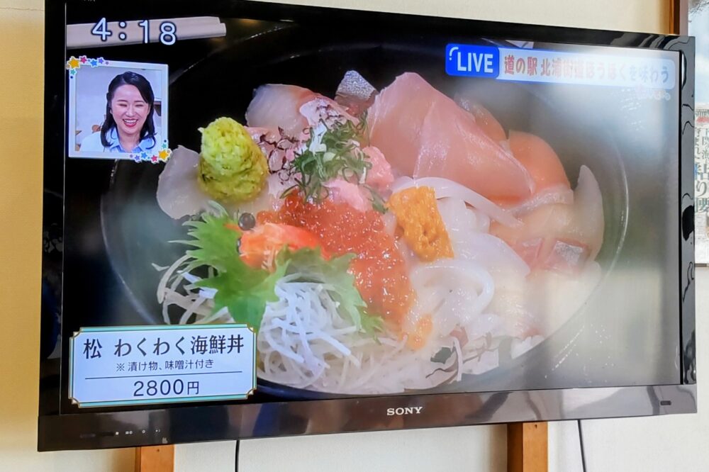 道の駅の美味しいものが、テレビ画面にあれこれ登場。レストランわくわく亭の、新しくなったメニューも。放送後は、スタッフの皆さんに完食いただきました。大人気!