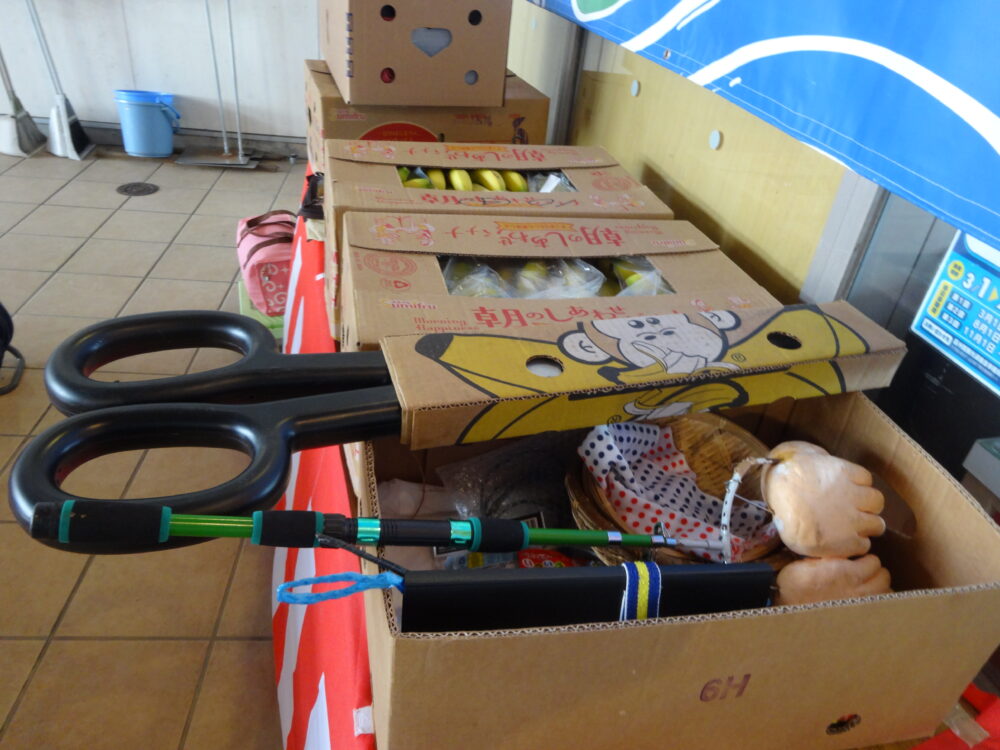 気になったのは始まる前に設置された場所の奥に置かれた小道具の中にあった巨大な〝はさみ!コレどこで使うんだろうとスタッフで首傾げていました(笑)